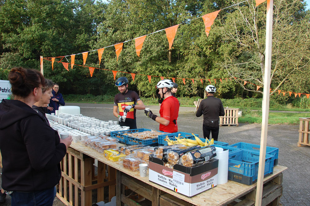 Elke afstand heeft ook een pauze waar de reserves als sportdrank, bananen en koeken aangevuld kunnen worden.
